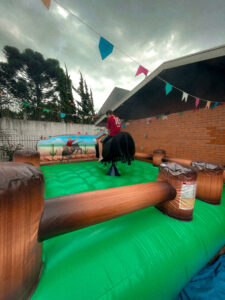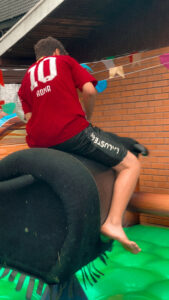 Dividimos ele em alguns momentos durante o nosso sábado, na parte da tarde das 13h às 16h nós recebemos as crianças e adolescentes atendidos pela ONG e fizemos uma festa todinha só pra eles, cheia de brincadeiras, alegria, doces típicos e muito amor envolvido. A atração principal ficou por conta do nosso Touro Mecânico e a máquina de Algodão Doce ambos fizeram a alegria das crianças e foram os protagonistas da nossa tarde. Você pode conferir um pouco como foi esse dia nessas imagens!